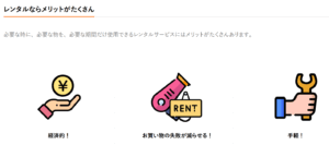 初期コストを抑える | 購入ではなくレンタルなので高価な機器も手軽に試せる。買う前のリスクが小さくなる。 |